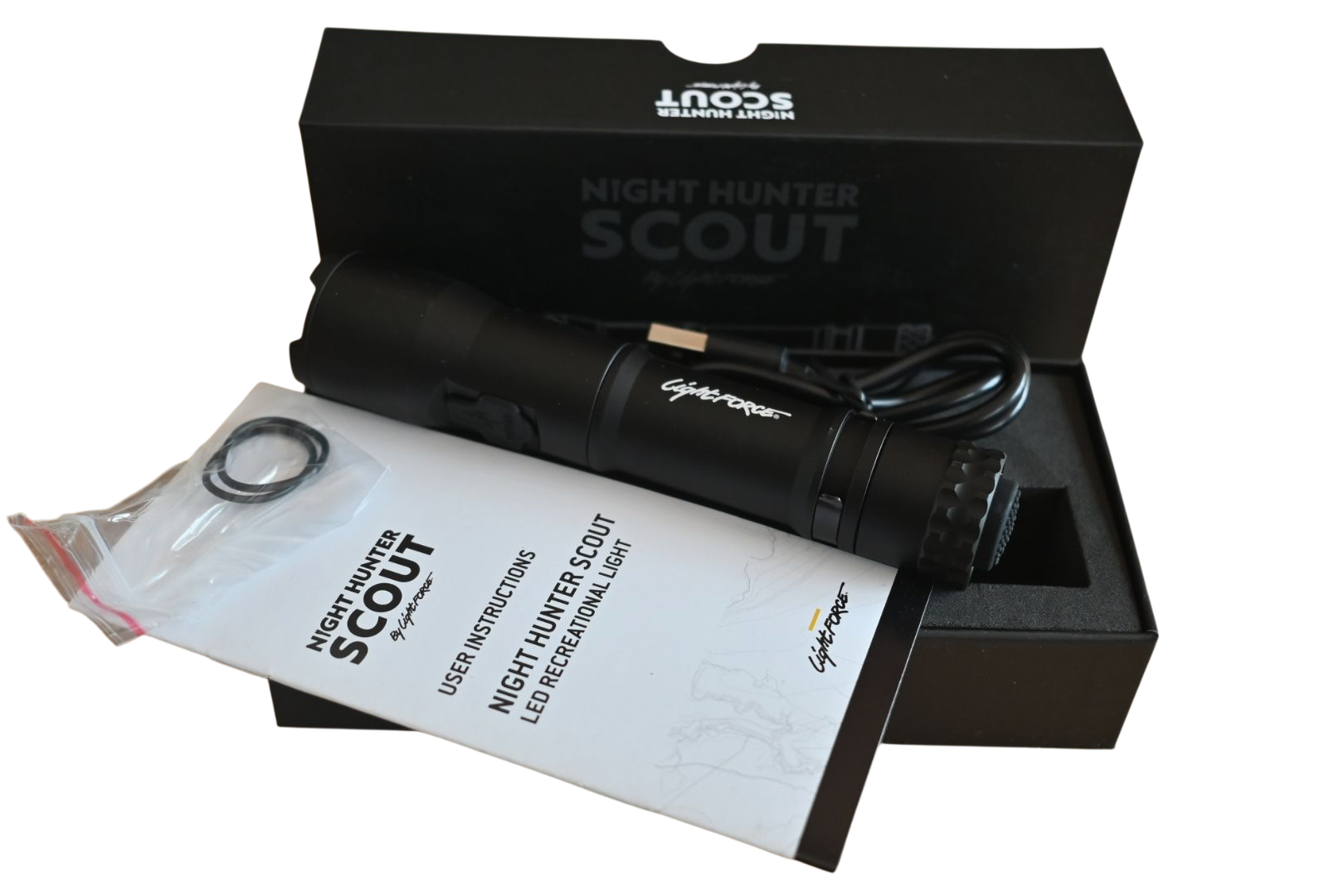 1 x Night Hunter Scout Recreational LED Torch1 x 18650 3400mAh battery1 x USB-C charging cable2 x Spare O-rings1 x User instructions