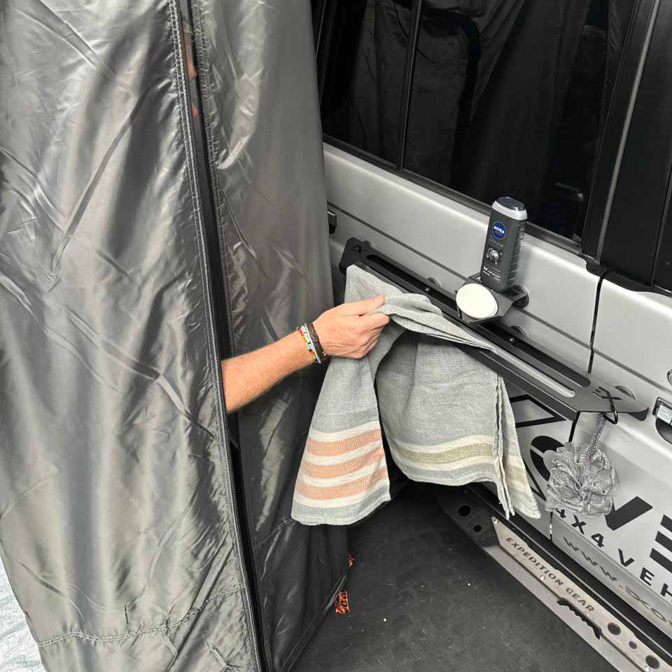 Stop tossing damp towels on the ground or over mirrors. The Magnetic Towel Holder is the essential upgrade for a tidy, efficient, and comfortable campsite shower experience.